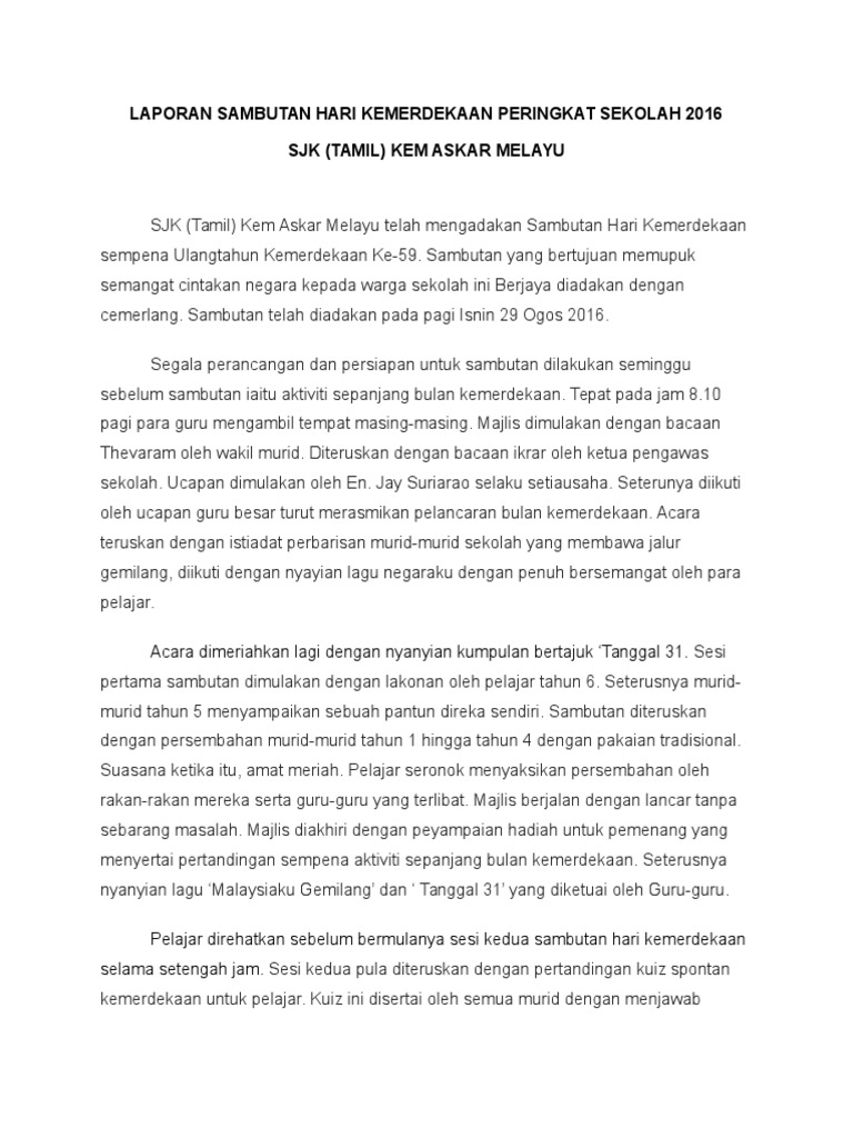 Contoh Karangan Laporan Sambutan Kemerdekaan Peringkat Sekolah Pdf